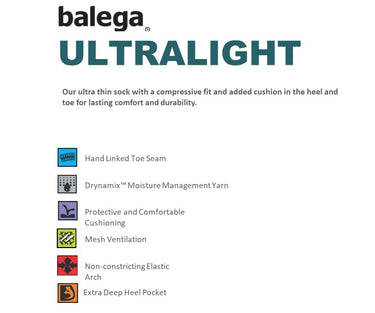 Balega’s advanced construction makes this sock feel like a second skin. Using a unique triple Y heel creates a heel pocket which is ergonomically formed to the actual shape of your heel. Ultra-light fibres create a second skin feel.